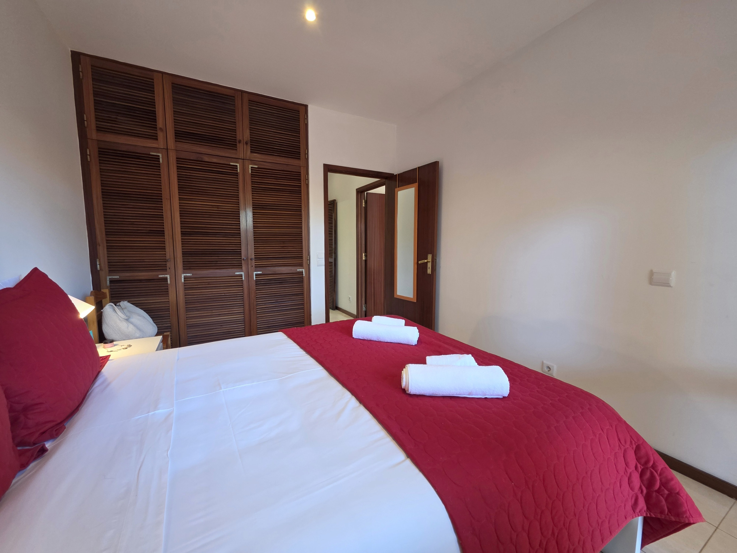 • QUARTO 2 (Casal): Cama de casal, roupeiro, AC e acesso direto ao terraço e à piscina.