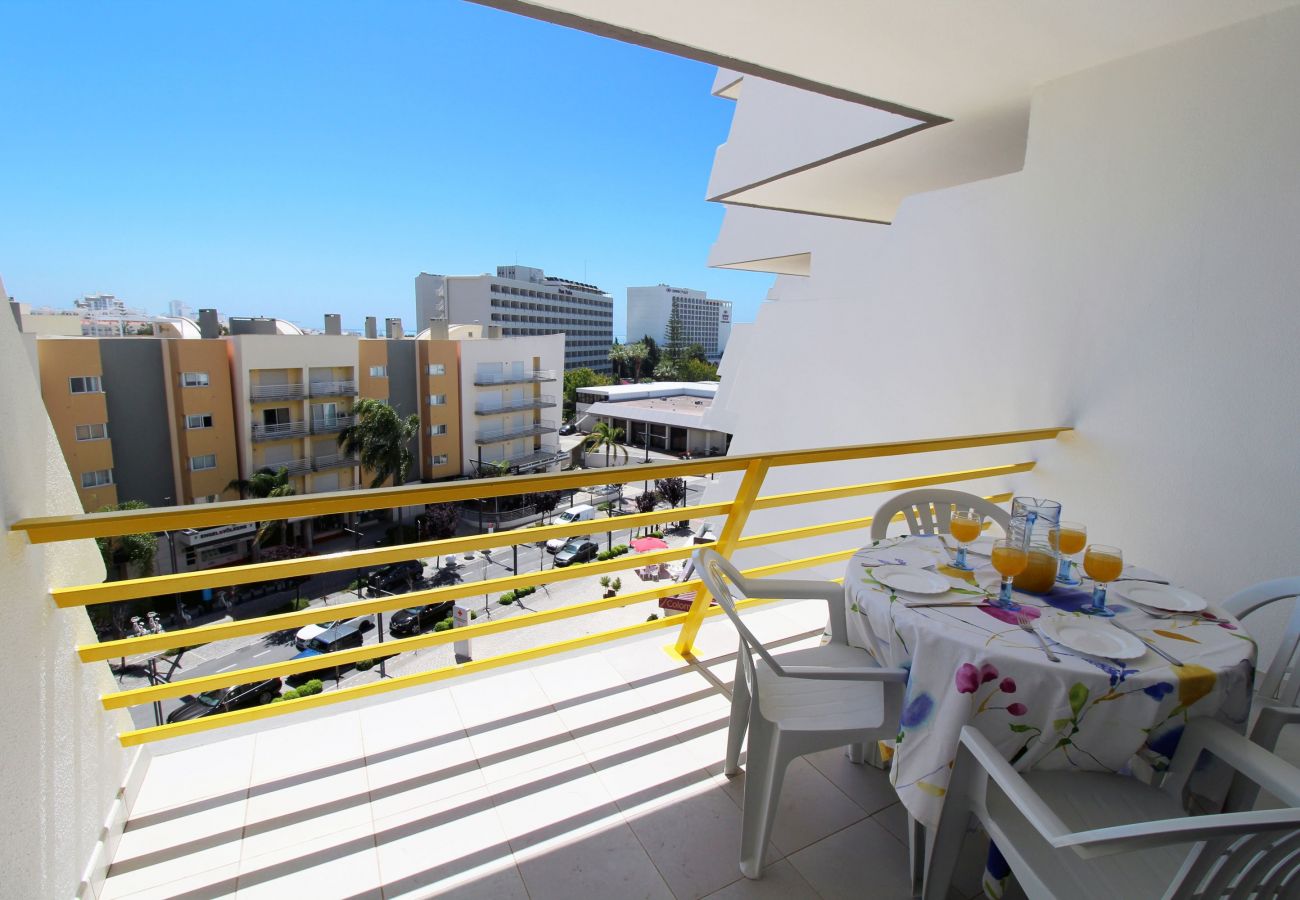 El apartamento está ubicado en el 5º piso y hay hasta 3 ascensores de servicio. Apartamento en edificio residencial, amplio y bien cuidado. Con capacidad para hasta 4 huéspedes, con un dormitorio, un baño completo, cocina completa, sala de estar y 2 balcones con vista a la ciudad. Aire acondicionado, wifi gratis, plaza de aparcamiento, piscina exterior compartida. Ideal para parejas o familias pequeñas (se admiten niños y bebés), en el centro de Vilamoura, perfecto para quienes desean prescindir del uso de un automóvil y estar a pocos pasos de todo.