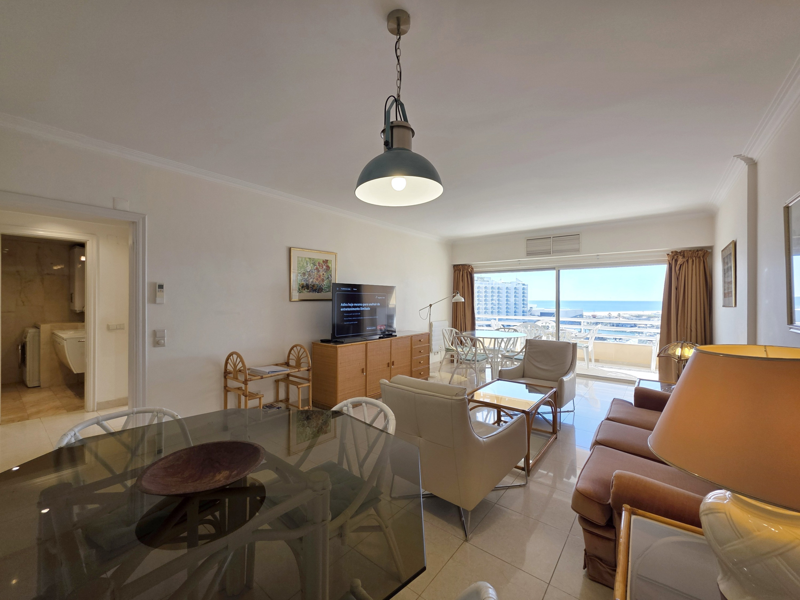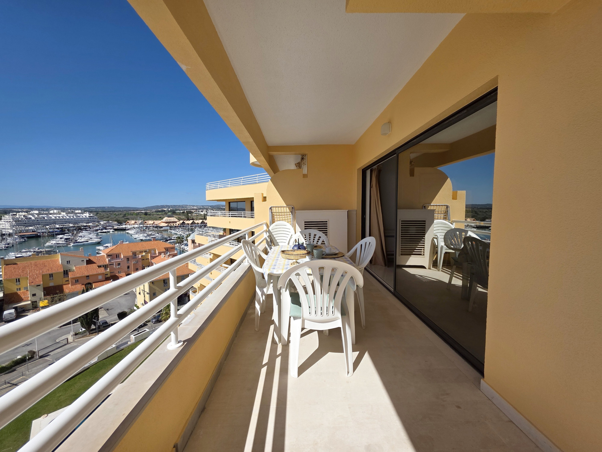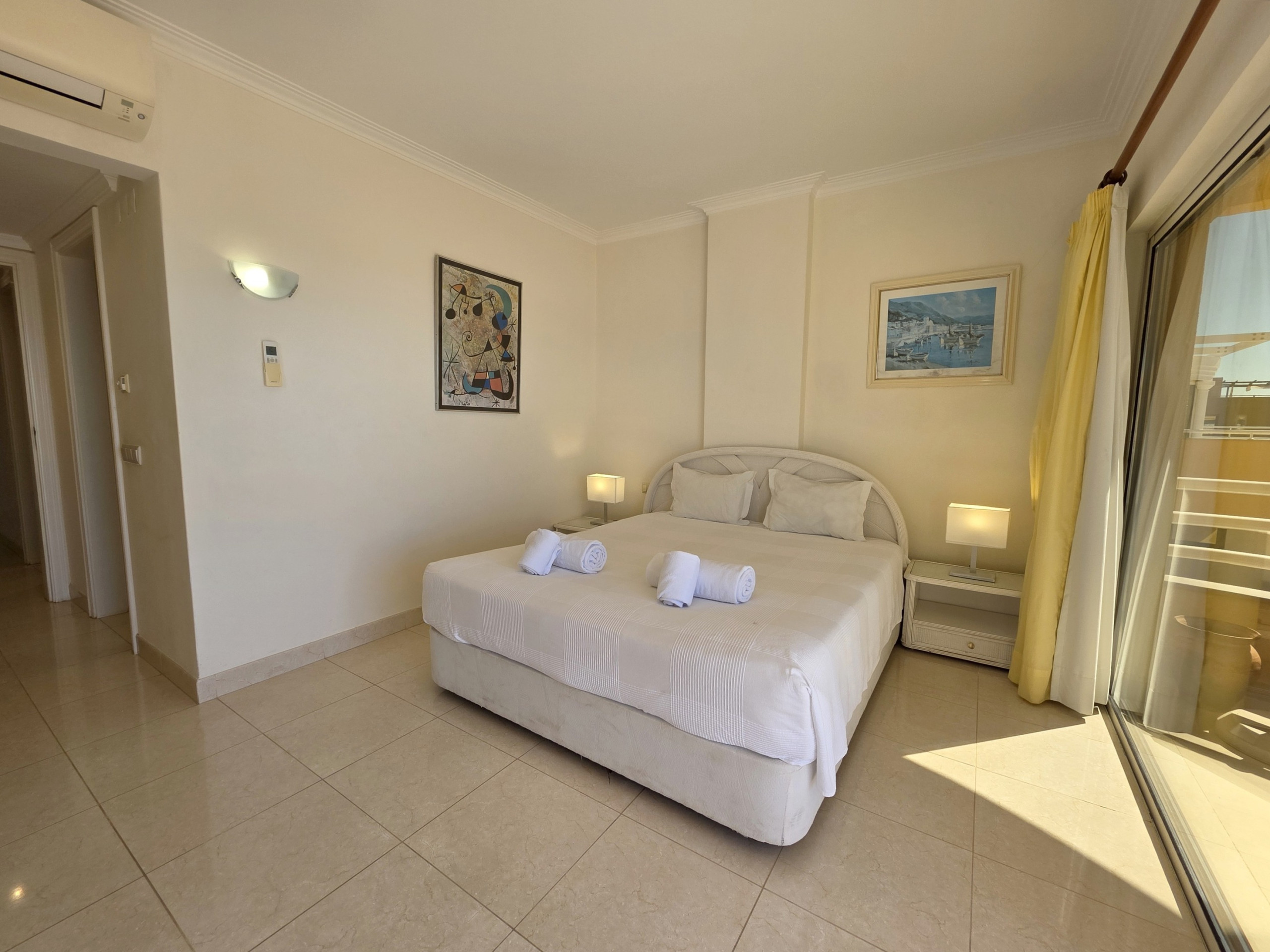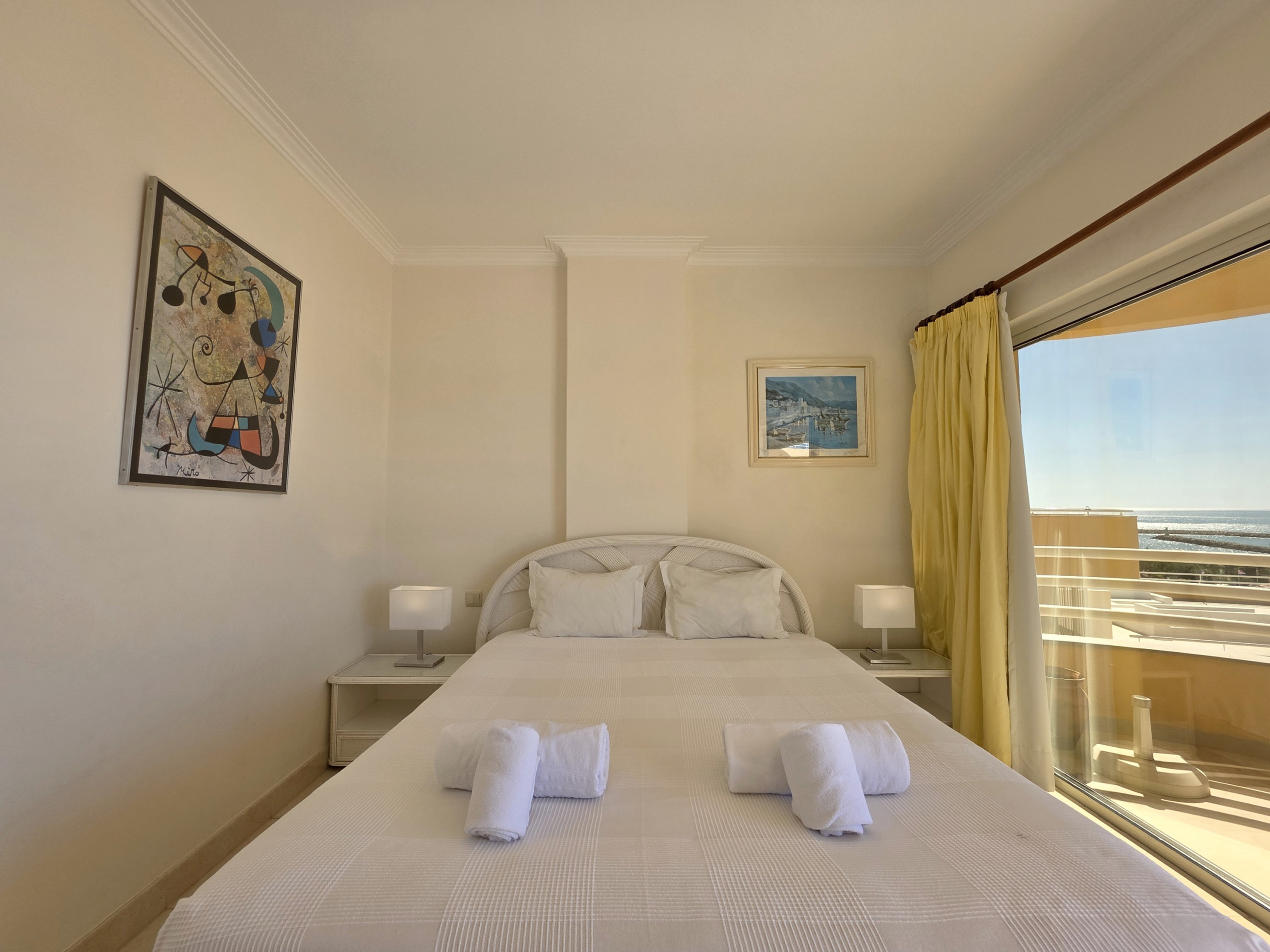Magnífico apartamento con decoración moderna, aloja hasta 7 huéspedes, con tres habitaciones, tres baños completos, cocina completa y sala de estar con balcón con vista a piscina, marina y mar. Aire acondicionado, WiFi gratis, TV por cable, estacionamiento exterior privado gratis, piscina exterior compartida para niños y adultos, piscina interior compartida (calefactada del 15 de Octubre al 15 de Abril), gimnasio compartido.