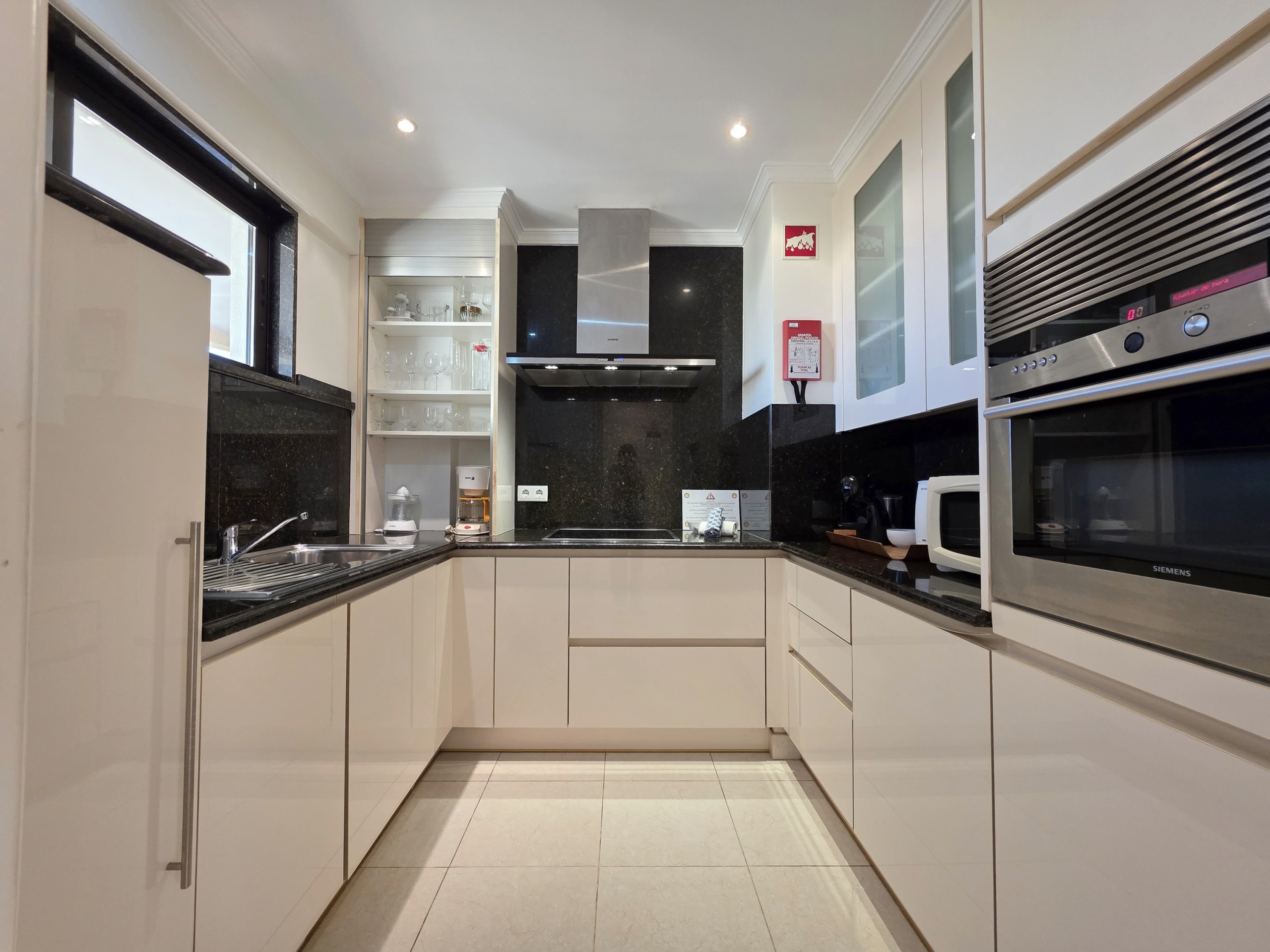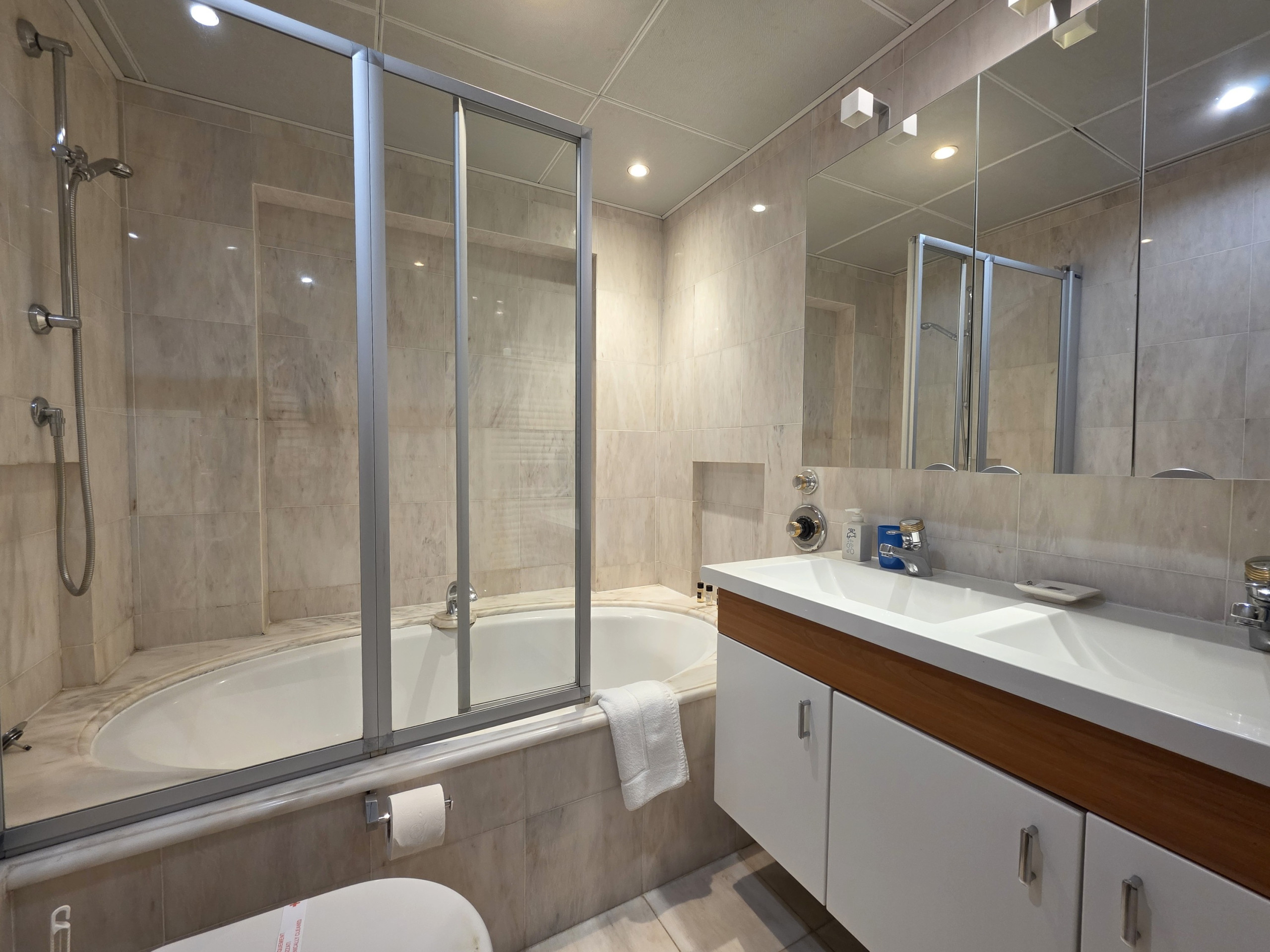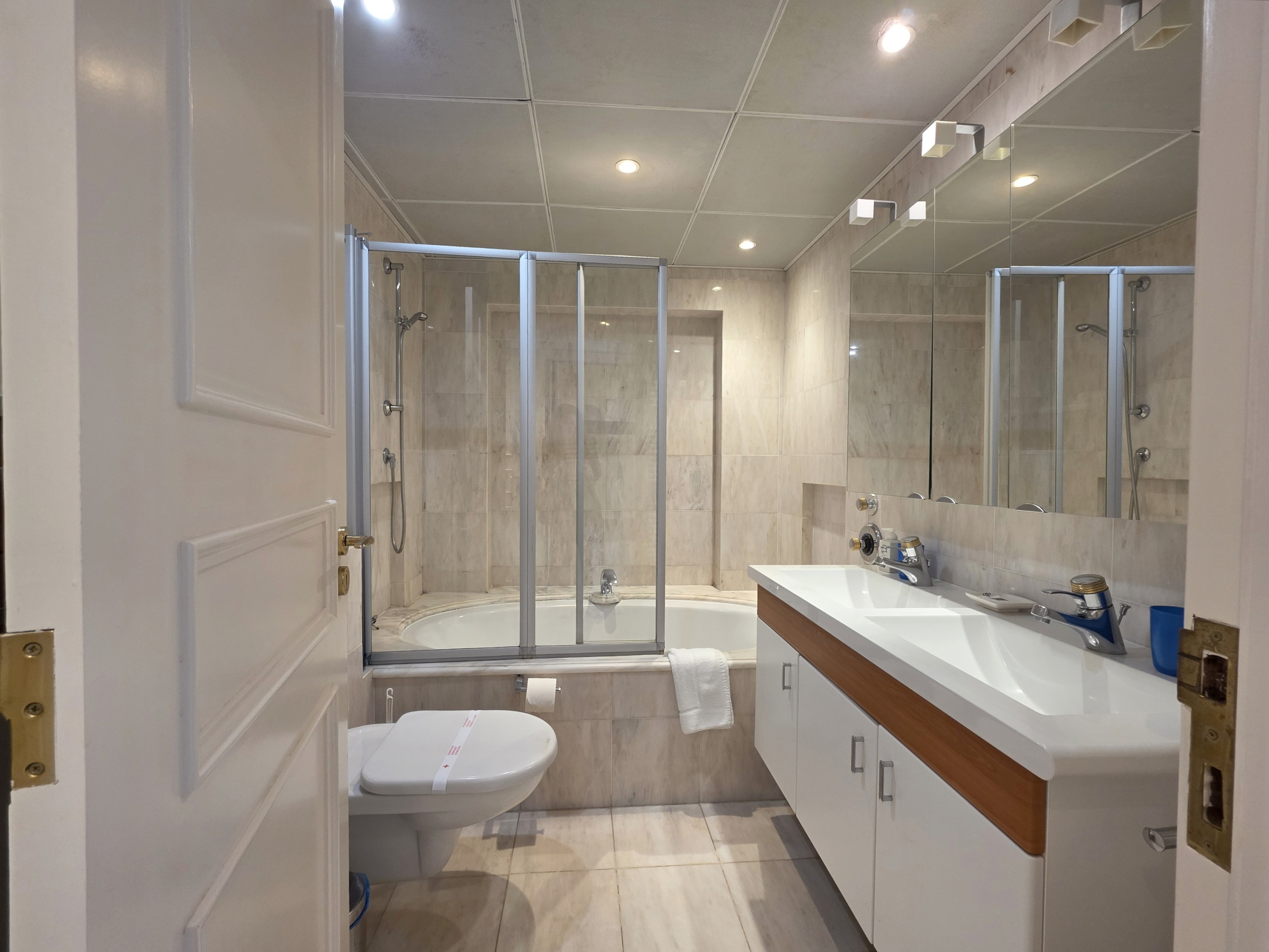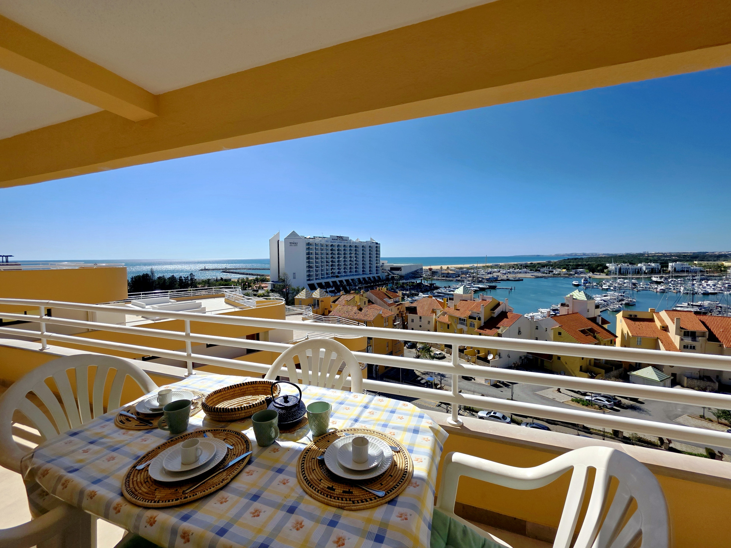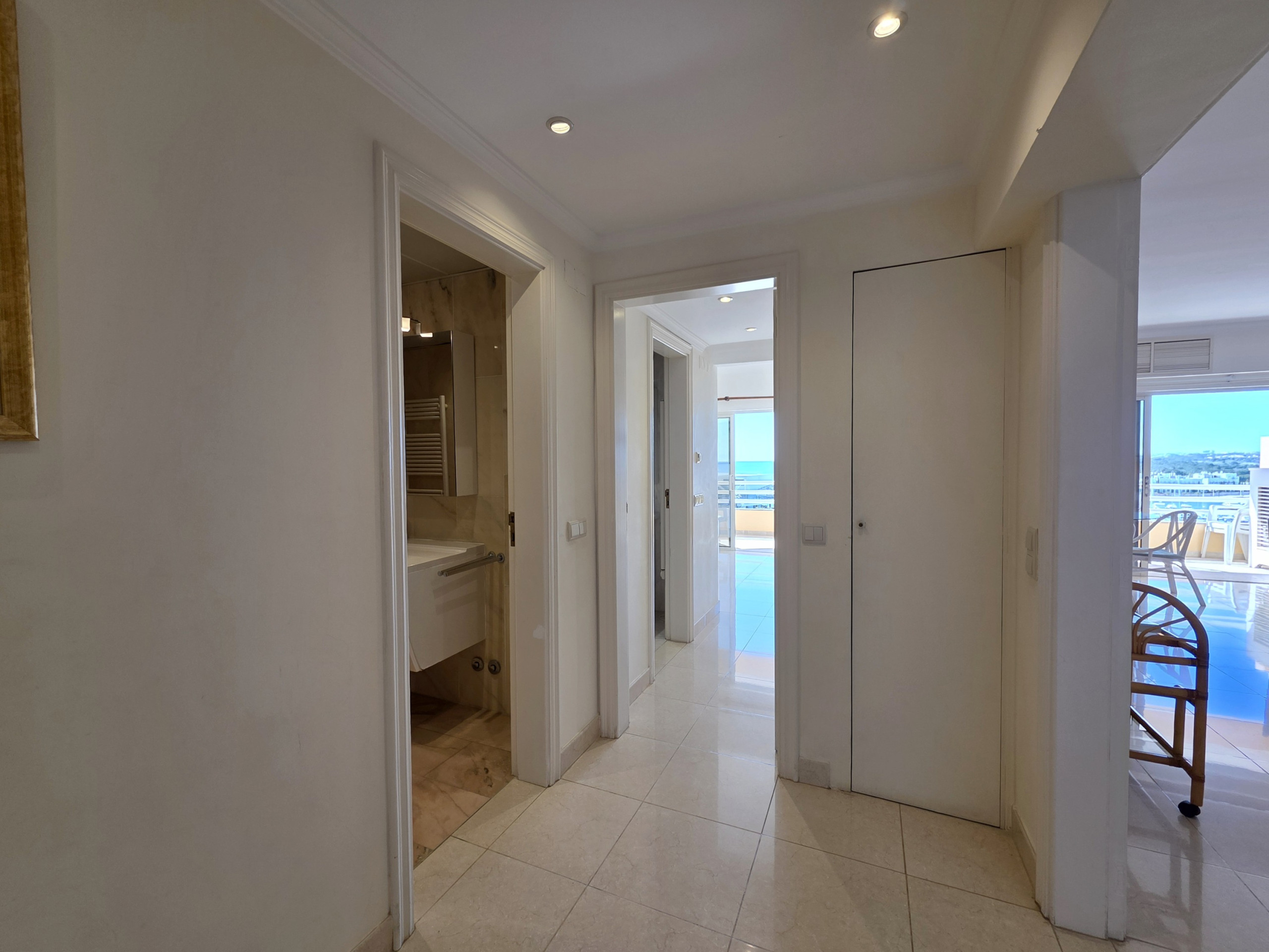 Magnífico apartamento con decoración moderna, aloja hasta 7 huéspedes, con tres habitaciones, tres baños completos, cocina completa y sala de estar con balcón con vista a piscina, marina y mar. Aire acondicionado, WiFi gratis, TV por cable, estacionamiento exterior privado gratis, piscina exterior compartida para niños y adultos, piscina interior compartida (calefactada del 15 de Octubre al 15 de Abril), gimnasio compartido.