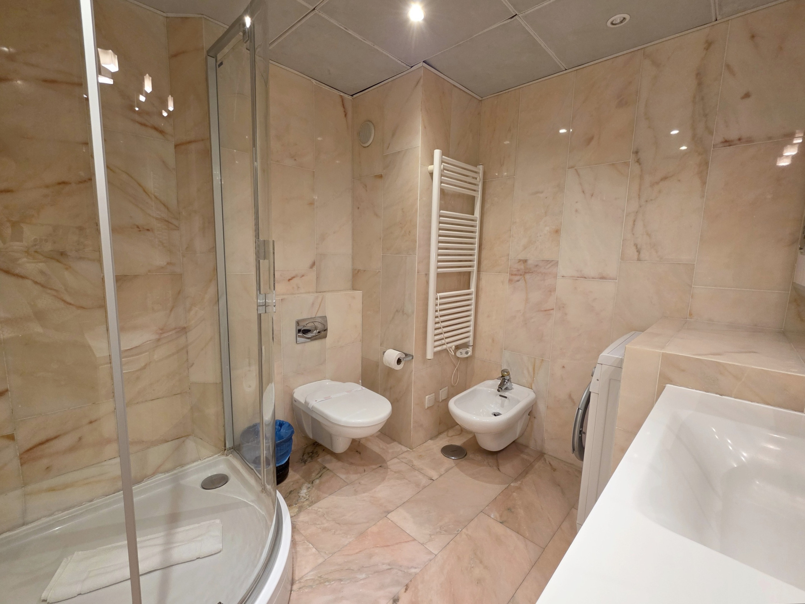 • Cuarto de baño completo con ducha sobre bañera, inodoro, bidé.