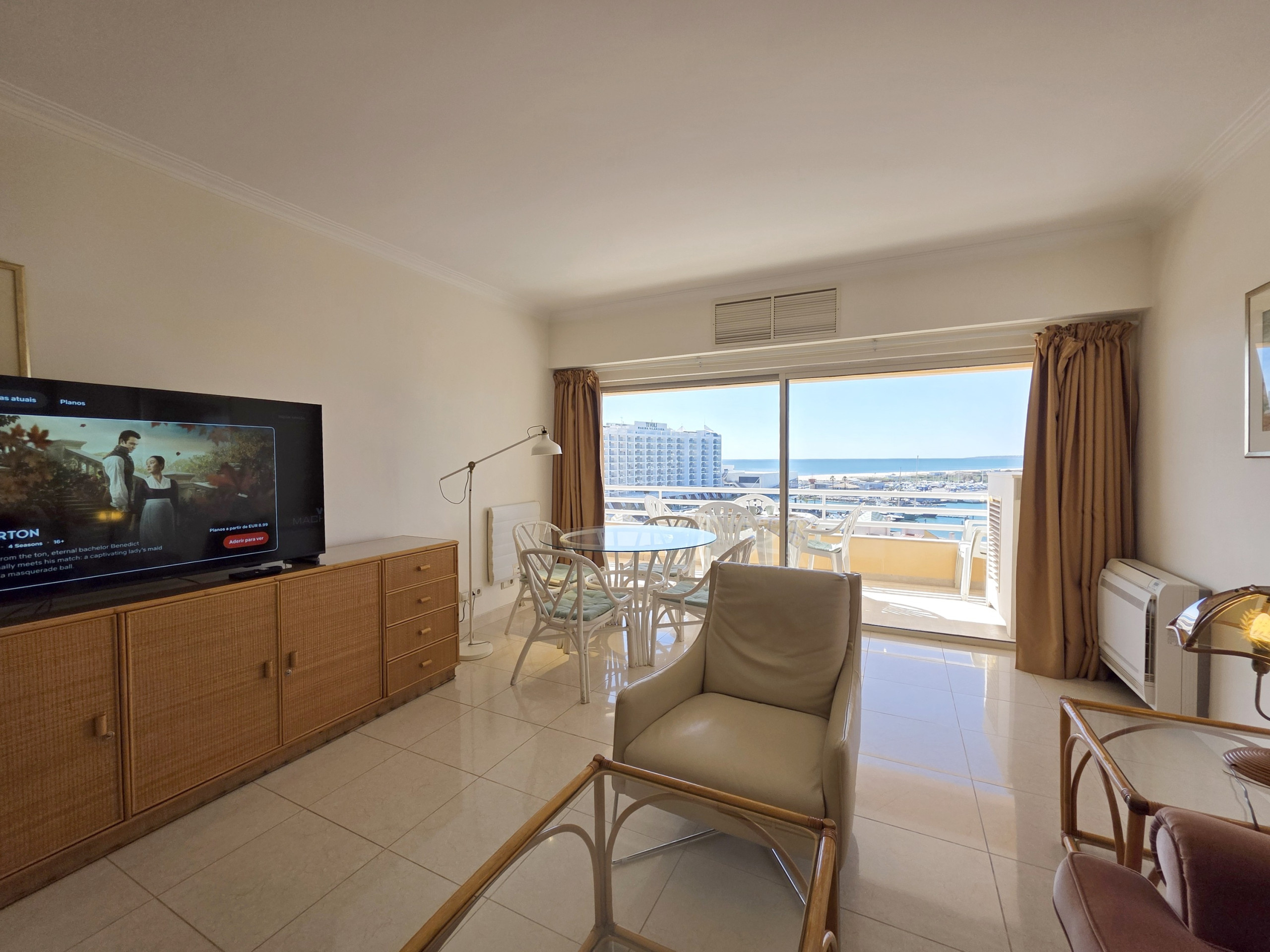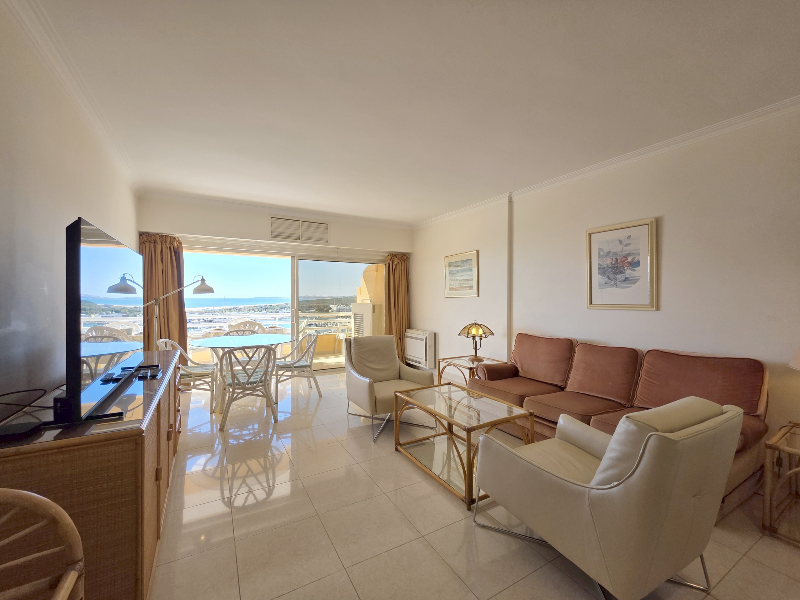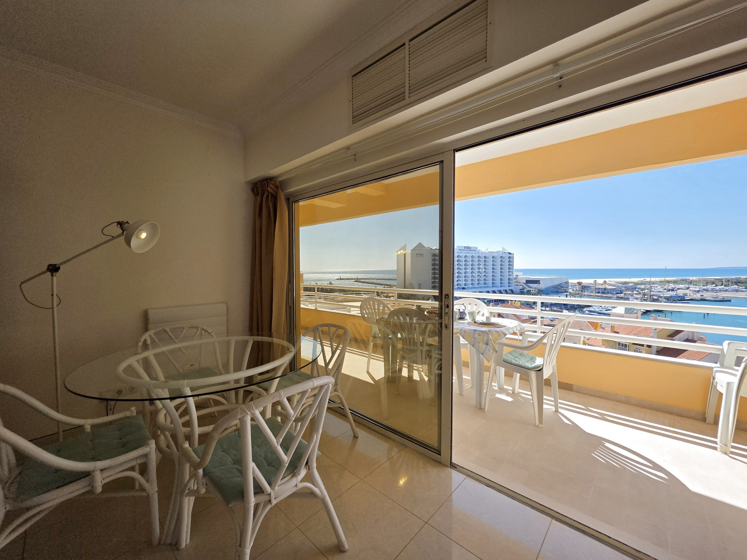 El apartamento es práctico y cómodo, aloja hasta 6 huéspedes, con dos habitaciones, dos baños completos, cocina completa y sala de estar con balcón con vista a piscina, marina y mar. Aire acondicionado, WiFi gratis, estacionamiento exterior privado gratis, piscina exterior compartida para niños y adultos, piscina interior compartida (climatizada del 15 de Octubre al 15 de Abril), gimnasio compartido.