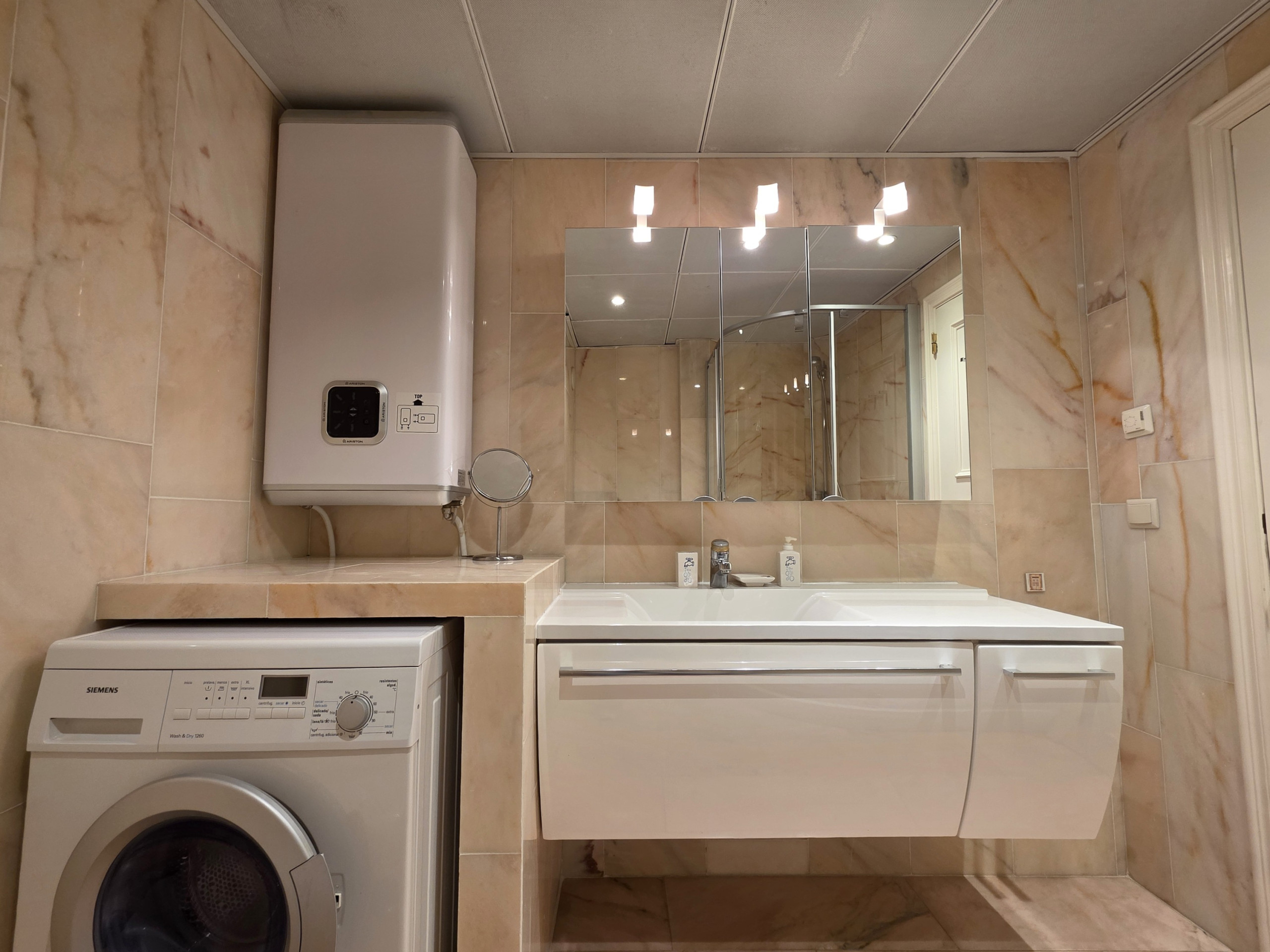 • Lavadora, plancha y tabla de planchar, tendedero plegable y aspirador de mano.