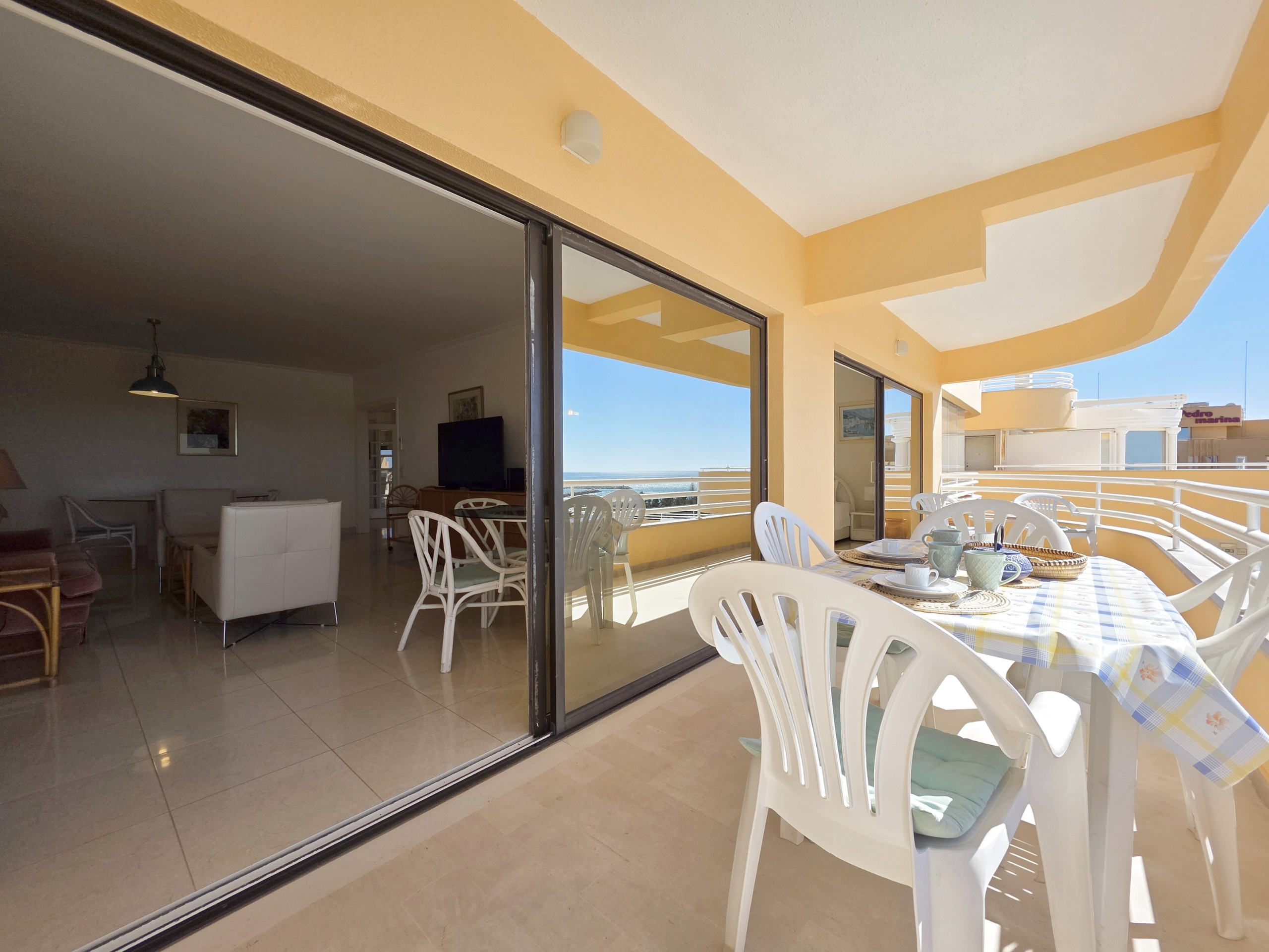 • Acceso directo a la terraza, una mesa de comedor exterior con 6 sillas y vista a la piscina, marina y mar