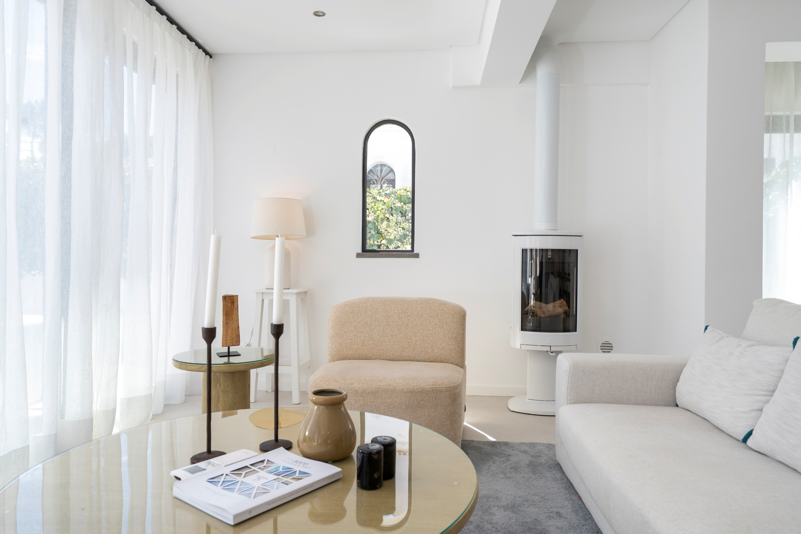 Villa cuidadosamente decorada con líneas y tonos armoniosos dentro de las tendencias actuales, que crean un ambiente tranquilizador, refrescante y confortable.