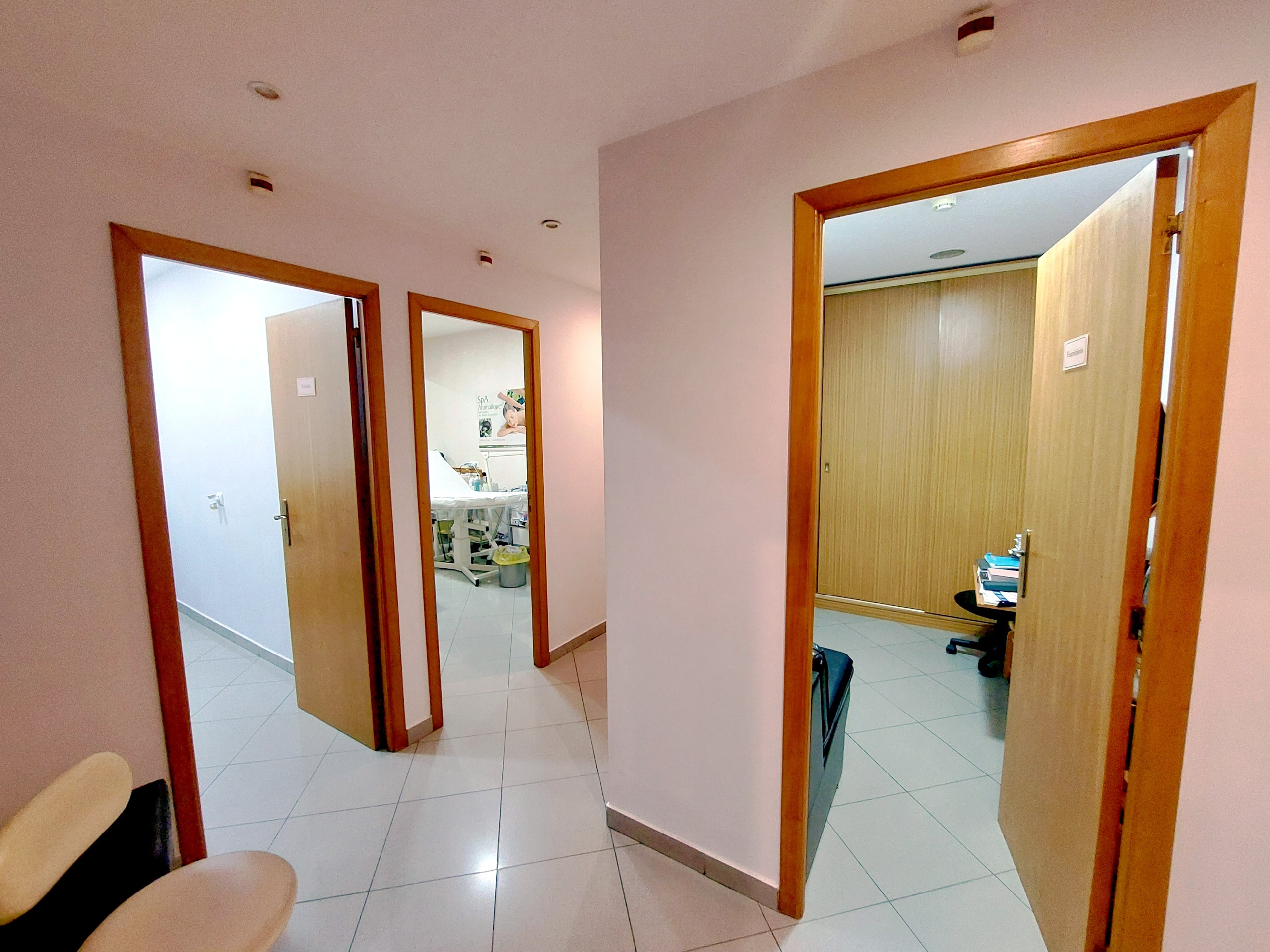 • Configuração Atual Pronta a Usar: Dispõe de sala de receção, 6 salas/gabinetes e uma kitchenette, ideal para clínicas, escritórios de co-working, centros de formação ou serviços de saúde/estética.